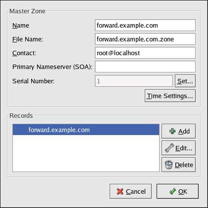 This chapter assumes that the reader has a basic understanding of BIND and DNS; it does not attempt to explain the concepts of BIND and DNS. This chapter does explain how to use the Domain Name Service Configuration Tool (redhat-config-bind) to configure basic BIND server zones. The Domain Name Service Configuration Tool creates the /etc/named.conf configuration file and the zone configuration files in the /var/named/ directory each time changes are applied.