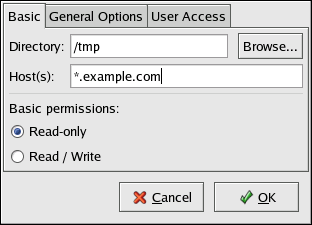 The NFS Server Configuration Tool reads and writes directly to the /etc/exports configuration file. Thus, the file can be modified manually after using the tool, and the tool can be used after modifying the file manually (provided the file was modified with correct syntax).